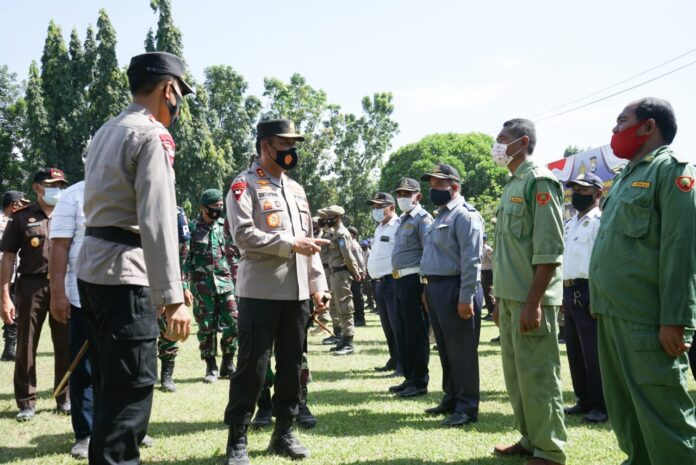 TERNATE, JAGAMELANESIA.COM – Dalam pengamanan Pemilihan Suara Ulang (PSU) Kabupaten Halmahera Utara, pada 28 April 2021, Kapolda Maluku Utara, Irjen Pol. Risyapudin, Jumat (9/4) pagi, melakukan pengecekan kelengkapan personel dan peralatan, serta sarana prasarananya dalam Apel yang digelar pasukan, yang bertempat di Polres Halmahera Utara.
