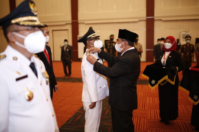 SOFIFI, JAGAMELANESIA.COM – Gubernur Provinsi Maluku Utara, Abdul Gani Kasuba, atas nama Presiden RI resmi melantik Walikota dan Wakil Walikota Terpilih Kota Ternate, Tauhid Soleman dan Jasri Usman di Kantor Gubernur Maluku Utara, Senin (26/4).