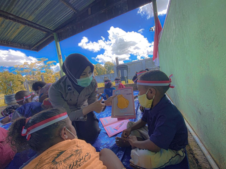BINTUNI, JAGAMELANESIA.COM – Satgas Arfak Polda Papua Barat memberikan edukasi kepada anak-anak di Kampung Waisiri dan Kampung Asouw Distrik Bintuni Barat Kabupaten Teluk Bintuni yang dipimpin Dirbinmas Polda Papua Barat Kombes Pol. Bagijo Hadi Kurnijanto, S.Ik, Kamis (27/5). Pada kegiatan tersebut Polri memberikan edukasi berupa permainan serta pembelajaran kepada anak-anak papua usia 4 s.d 10 tahun.
