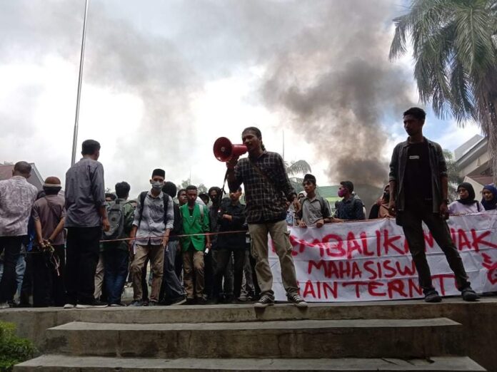 Koordinator aksi, Sukri Sarafudin, dalam orasinya menyampaikan bahwa begitu banyak persoalan yang telah terjadi di lingkup Institut Agama Islam Negeri (IAIN) Ternate, namun para pemangku kepentingan dalam hal ini Rektor IAIN Ternate, tidak mampu menyelesaikan bahkan mencarikan solusi terkait persoalan-persoalan ini pun hampir tidak ada sama sekali.