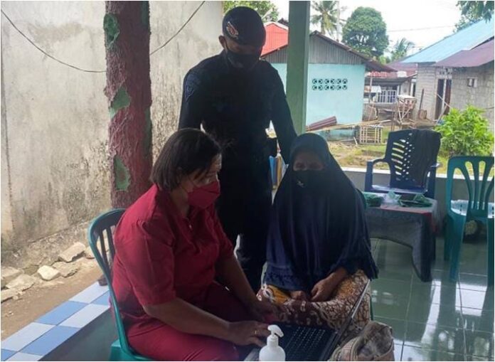 MALUKU – Guna membantu pemerintah dalam mempercepat vaksinasi covid – 19, personil Batalyon A Pelopor dipimpin oleh Aipda Devi Sopacua bersama petugas kesehatan Puskesmas Tulehu melaksanakan kegiatan Akselerasi percepatan Vaksinasi Covid – 19 di desa Liang, Kecamatan Salahutu, Kabupaten Maluku Tengah, Rabu, (22/12/2021).