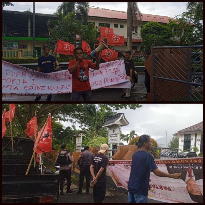Aksi ini menyuarakan tuntutan agar kedua lembaga penegak hukum ini lebih serius lagi dalam mengusut dugaan Tindak Pidana Korupsi (Tipikor) pada sejumlah instansi pemerintah terutama Dinas Pekerjaan Umum dan Penataan Ruang (PUPR) Malut.