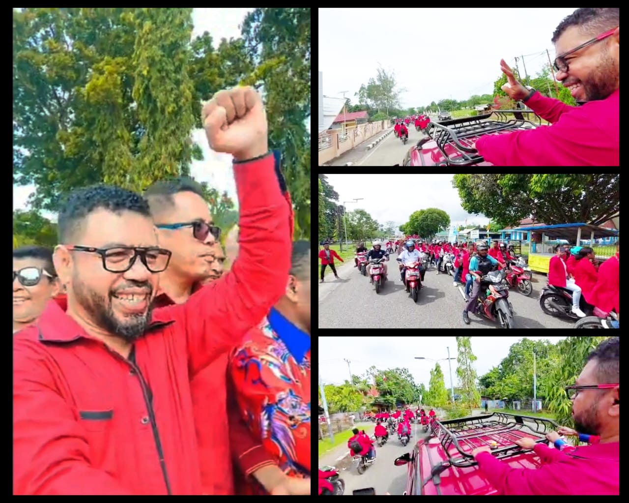 Selama konvoi berjalan, barisan keluarga besar STIH ‘memerahkan’ sepanjang jalan kota Manokwari. Nampak antusiasme dan kegembiraan ratusan mahasiswa dan alumni menggunakan baju bercorak merah sebagai mana warna kebanggaan STIH Manokwari.