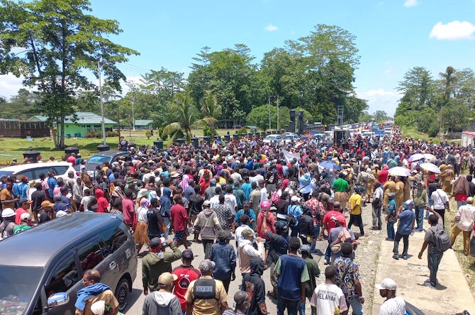 PAPUA, JAGAMELANESIA.COM – Gelombang protes massa mewarnai jalannya proses hukum terhadap seorang Pelaksana Tugas (Plt) kepala daerah di Papua. Ribuan massa turun ke jalan memprotes penetapan tersangka sekaligus menolak kriminalisasi terhadap Plt Bupati Mimika Johannes Rettob.