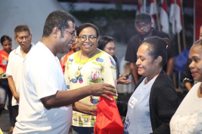 BIAK, JAGAMELANESIA.COM – Bupati Biak Numfor Herry Ario Naap atau Bupati HAN bersama Wakil Bupati Calvin Mansnembra dan Ketua TP PKK Biak, Ny. Ruth Naomi Naap Rumkabu menyerahkan 130 paket makanan tambahan bergizi kepada para ibu hamil.