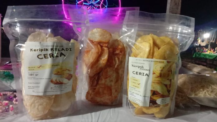 “Harga keripik Ceria bervariasi, ada Rp 15.000,- dan ada Rp 20.000,- tergantung ukurannya. Ada juga stik keladi yang juga gurih dan lezat ketika disantap,” katanya.