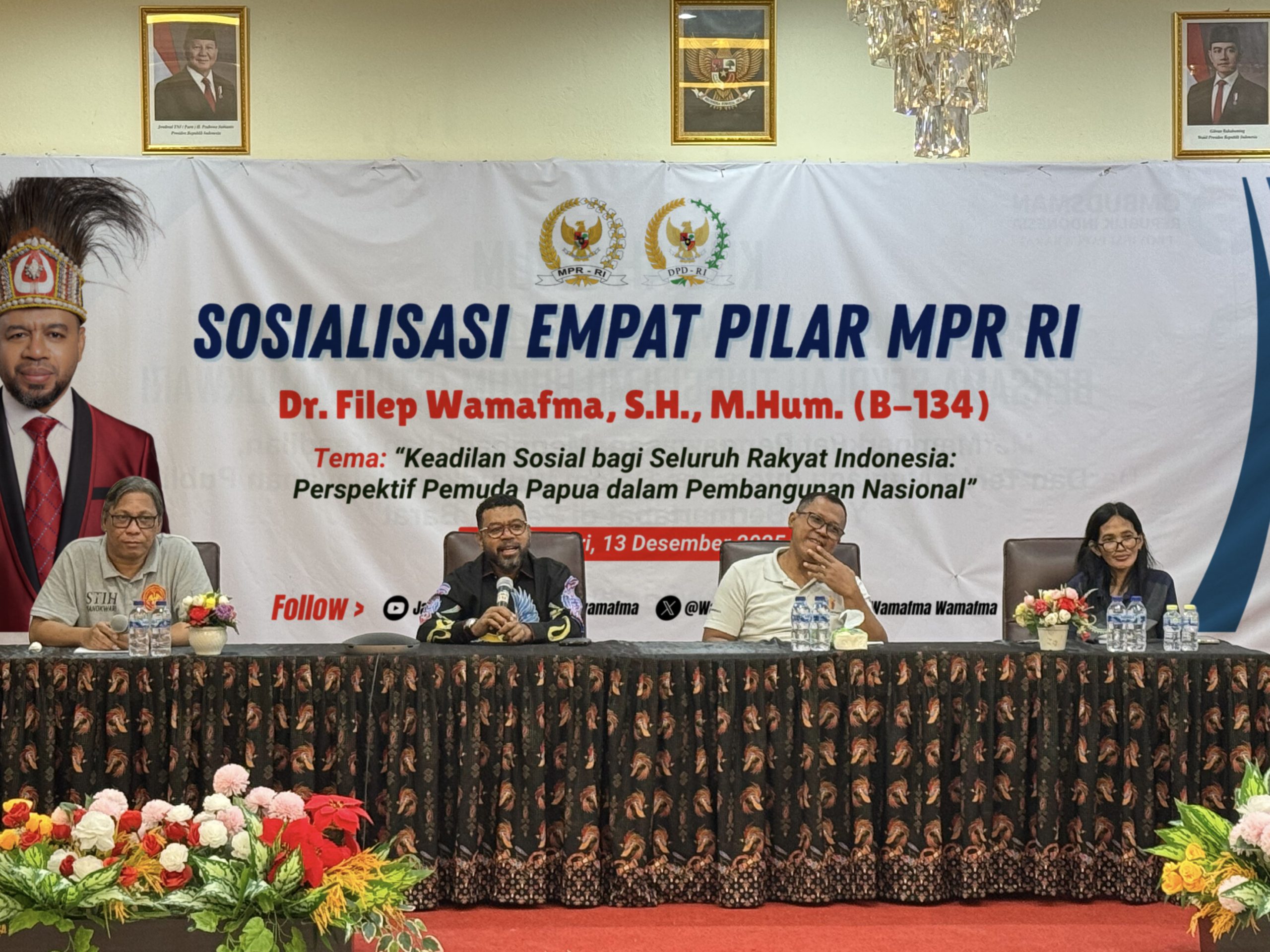 “Keadilan sosial bukan sekadar slogan konstitusional, tetapi harus hadir dalam kebijakan pembangunan yang dirasakan langsung oleh rakyat, khususnya pemuda Papua sebagai generasi penerus bangsa,” ujar Filep Wamafma.