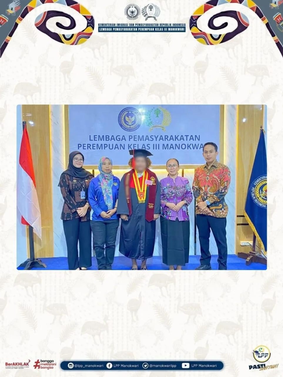 Dalam kesempatan yang sama, Pace Jas Merah itu menyampaikan terima kasih kepada pihak Lapas Perempuan Kelas III Manokwari, karena telah memfasilitasi mahasiswa hingga wisuda. Ia juga menekankan komitmennya untuk memberikan ruang bagi warga binaan agar tetap memperoleh pendidikan meskipun berada di dalam Lapas.